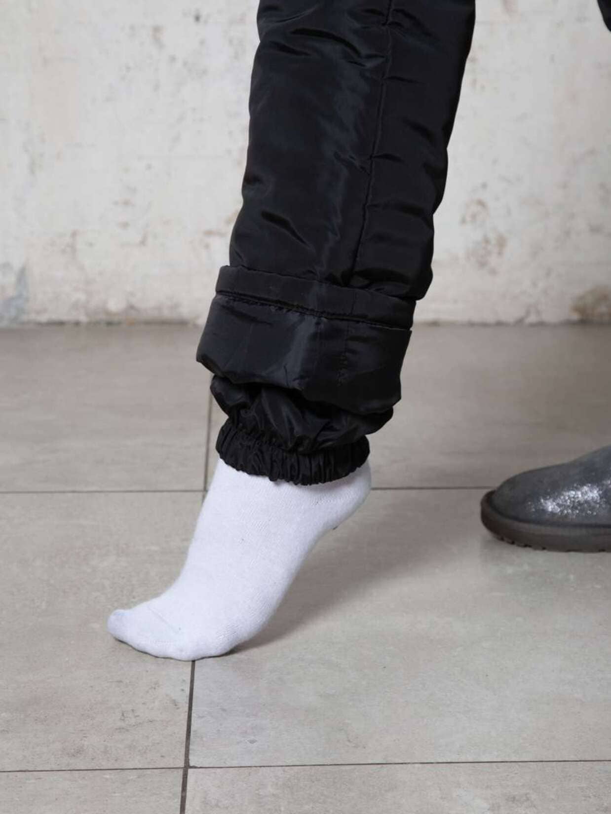 По низу штанины предусмотрен клапан снегозащиты, который предотвращает попадание снега внутрь.