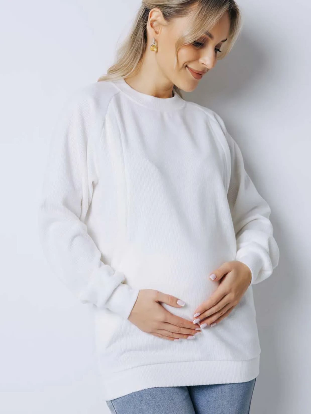 Джемпер 77111 молочный вельветовый для беременных и кормящих