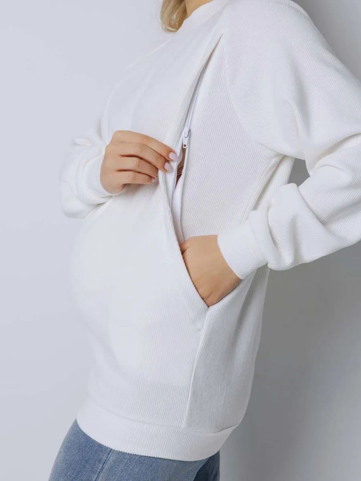 Джемпер для беременных и кормящих молочный вельветовый молниями