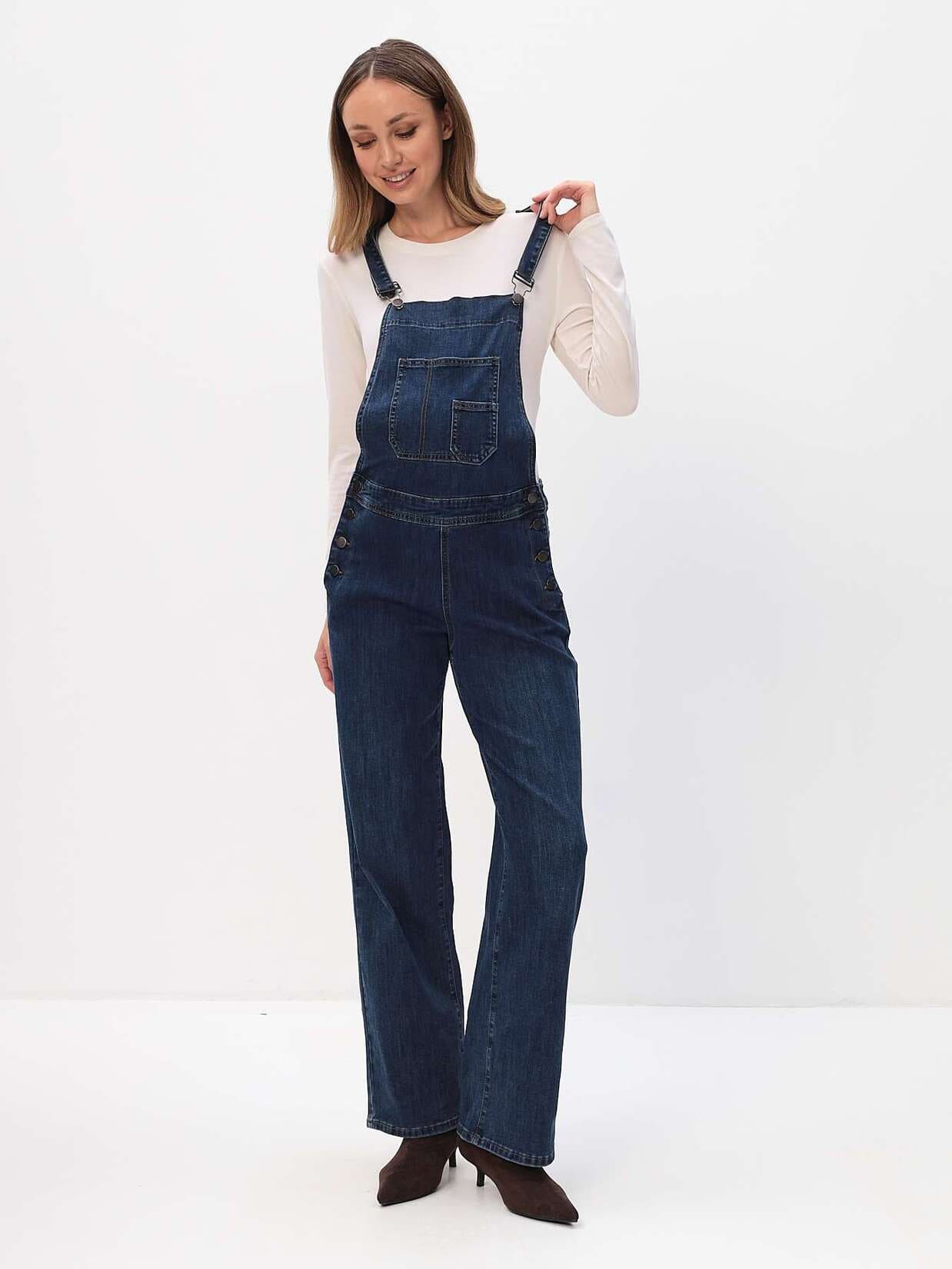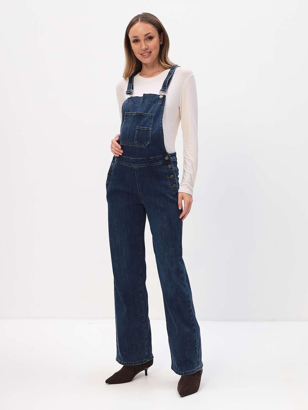Джинсовый комбинезон Глори для беременных синего цвета прямого кроя на пуговицах