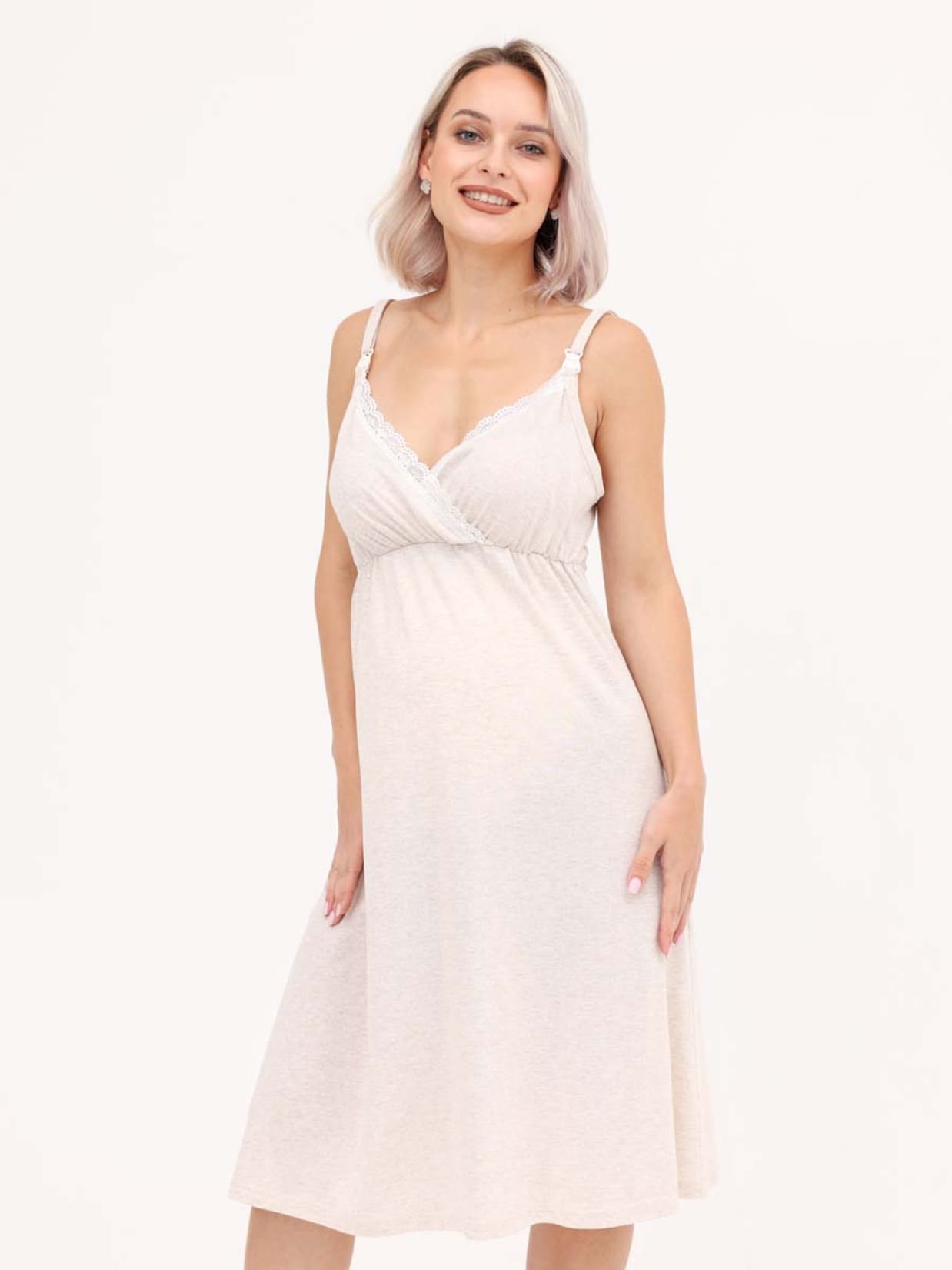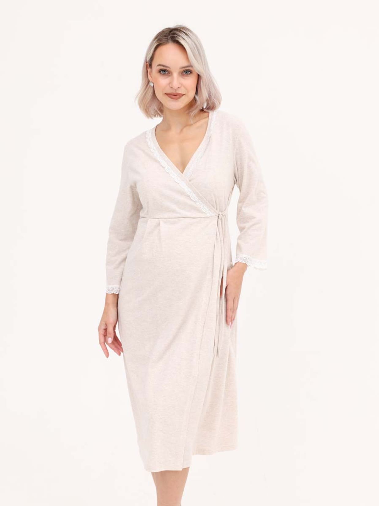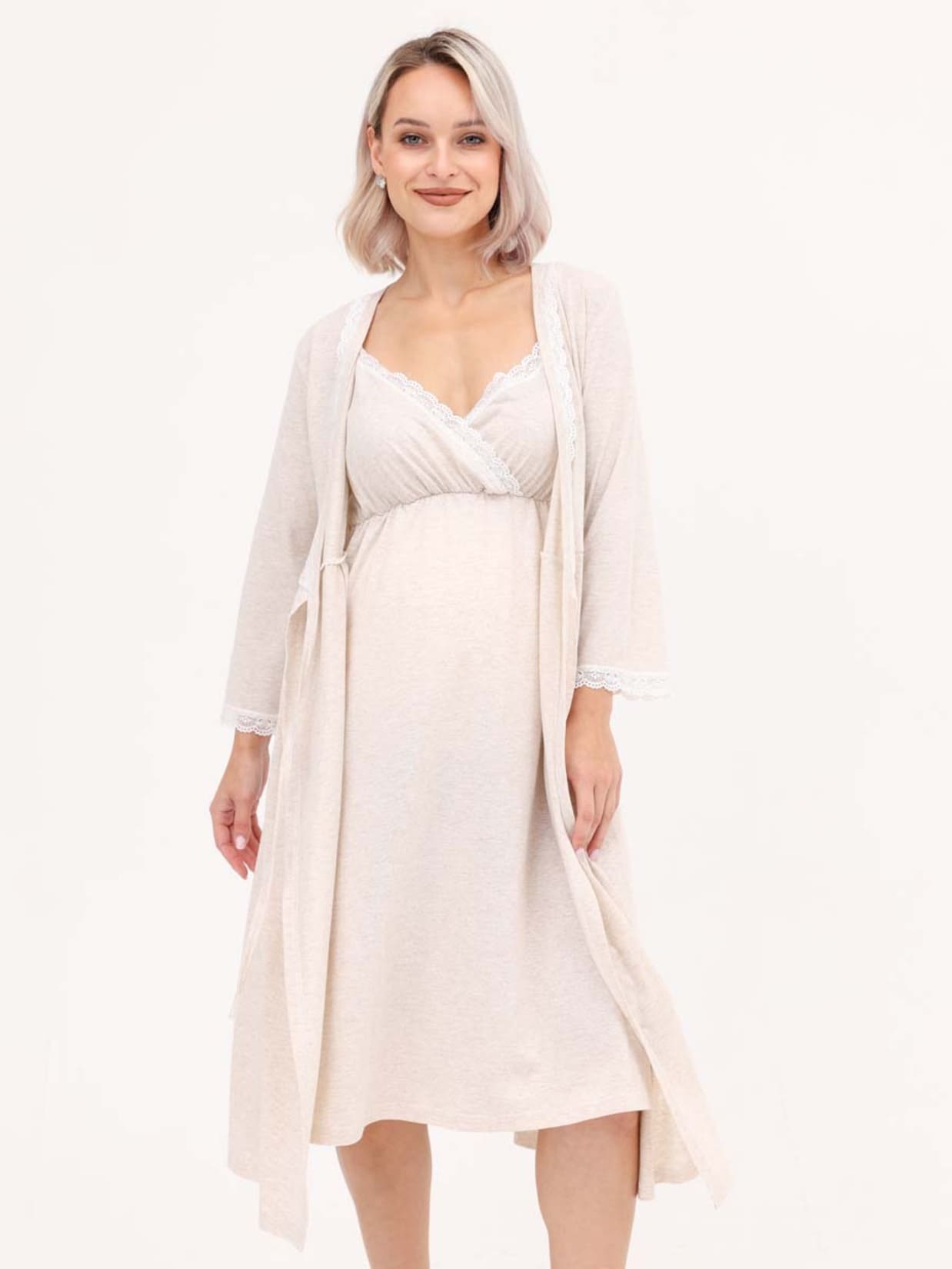 Комплект с секретом для кормления пшеничный меланж с молочным из сорочки с халатом