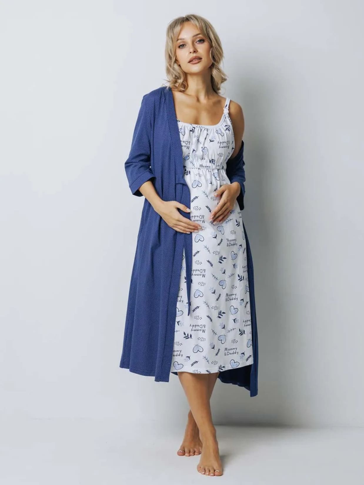 Представляем комплект для беременных и кормящих, который станет незаменимой частью вашего гардероба. В набор входят халат и сорочка, выполненные из мягкого хлопкового трикотажного полотна.